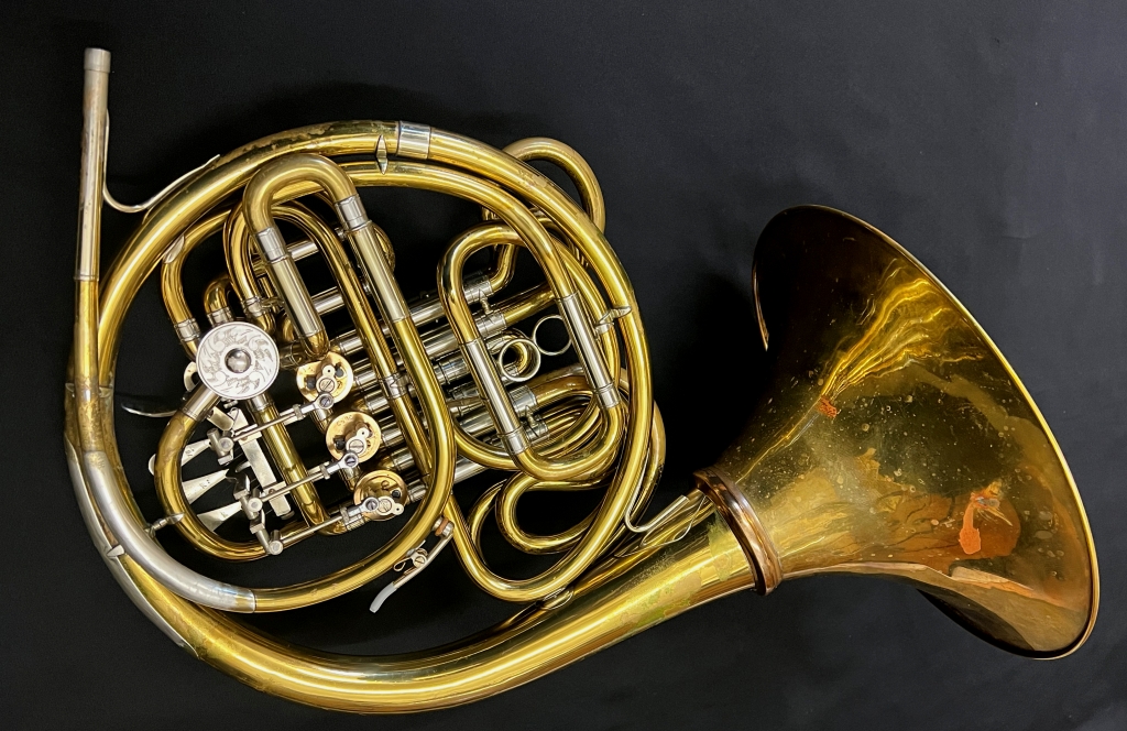 A 1970s Alex 103 – in unlacquered yellow brass and with a screw bell and adjustable finger hook. Valve pressure is good, so lots of life left.