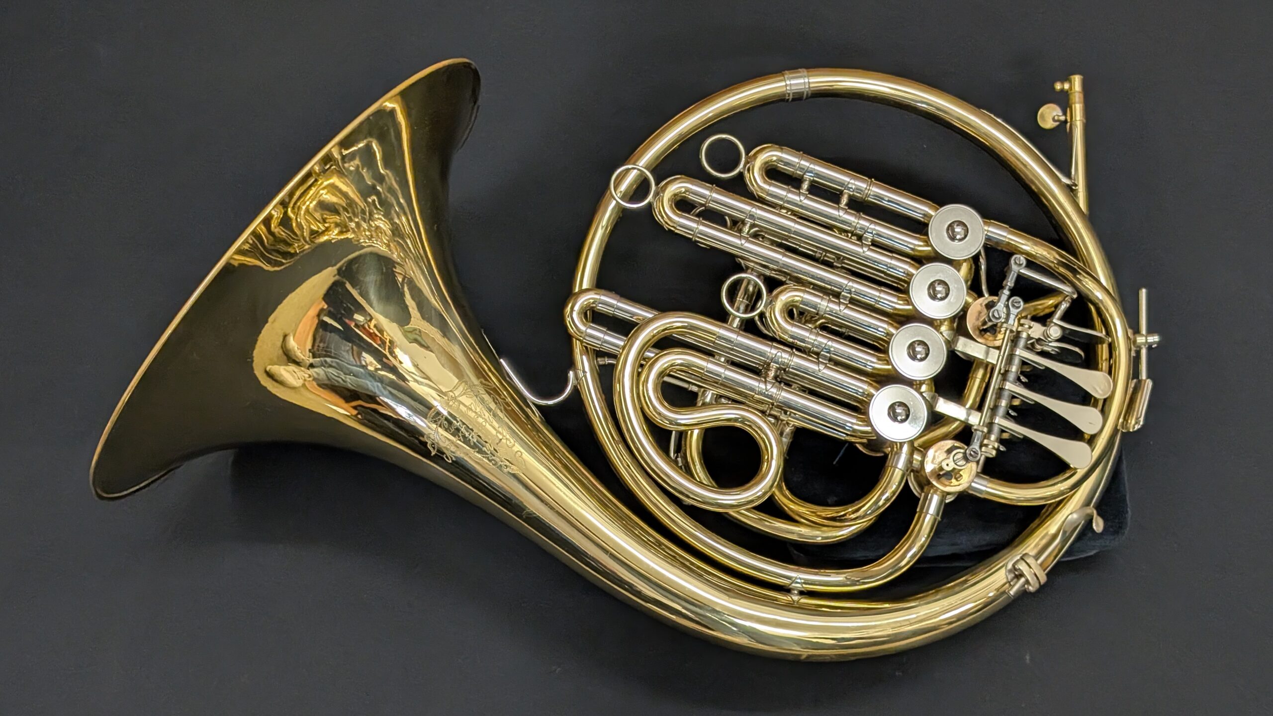 This is made with a slightly heavier bell and valve section than his recent instruments and has a good weight of sound.