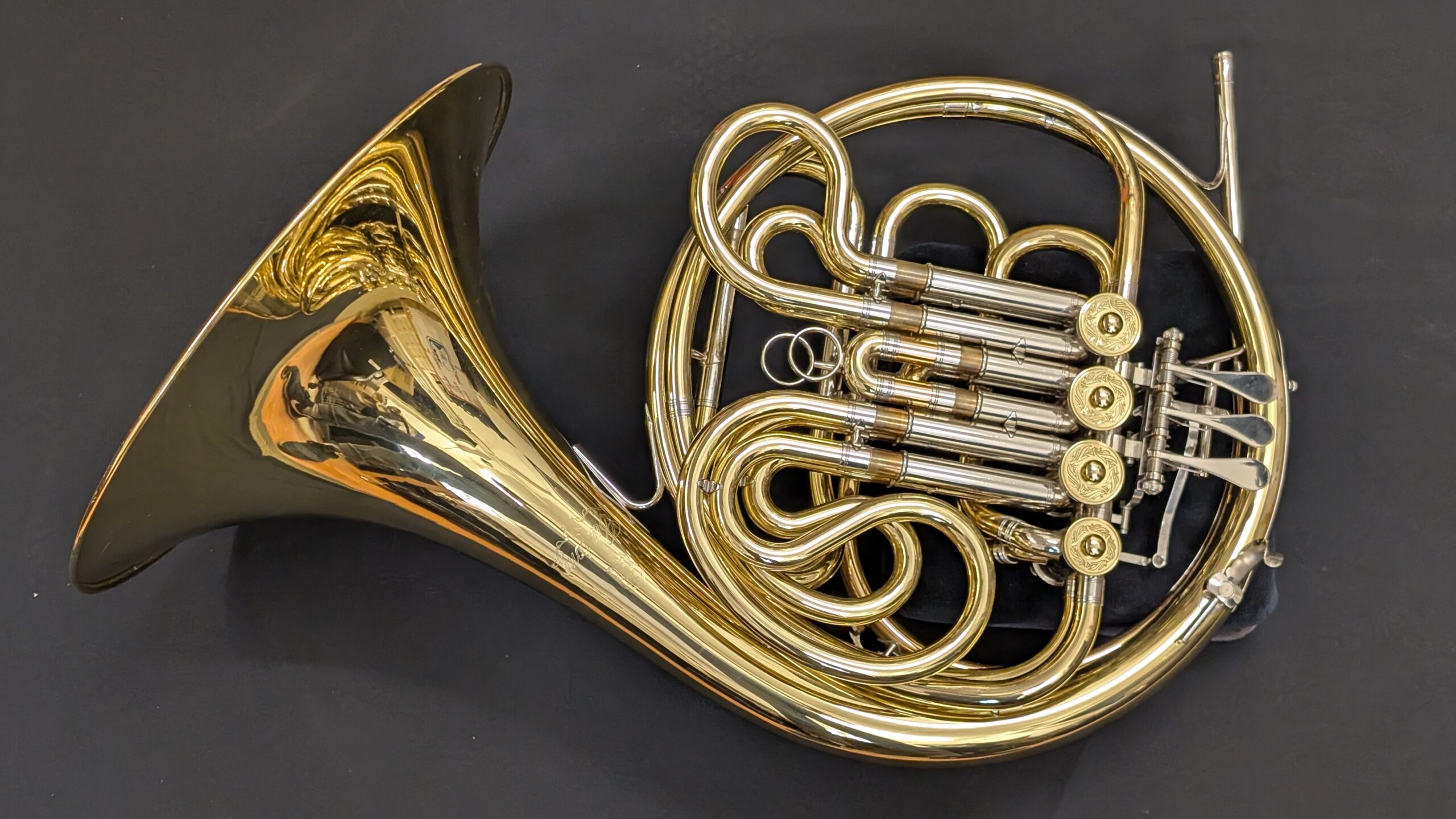 This horn has hand lapped valves, custom bell and is in lacquered yellow brass. It is a very light instrument to hold and plays with a lightness of tone, but with depth and clarity. The mechanics are superb and this will give decades of high quality use.