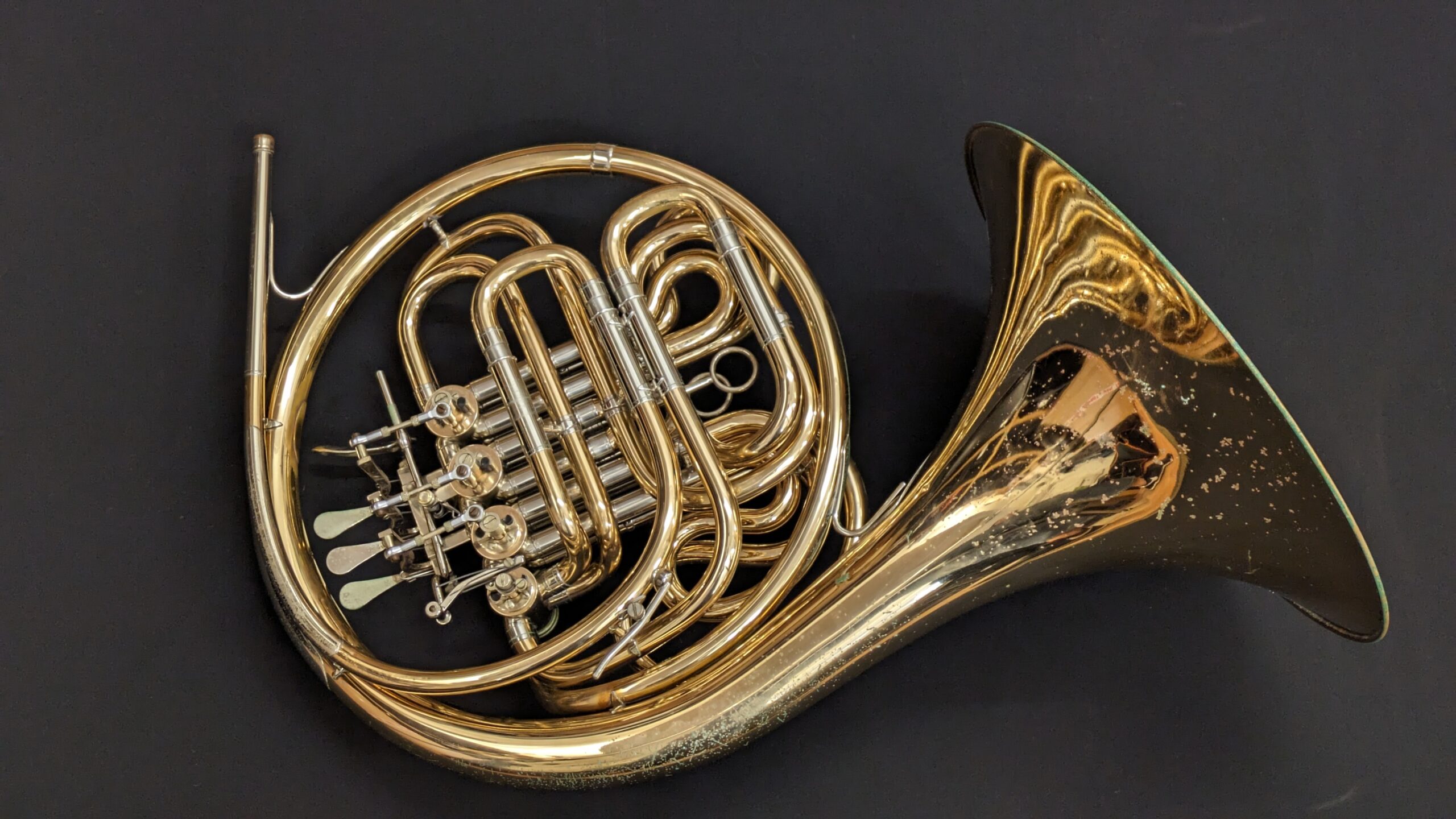 This has caused fairly extensive dezincification leaving pink marks in the brass. The horn cannot be sold at full price, so this is an opportunity to own a top class horn at a cheap price.
