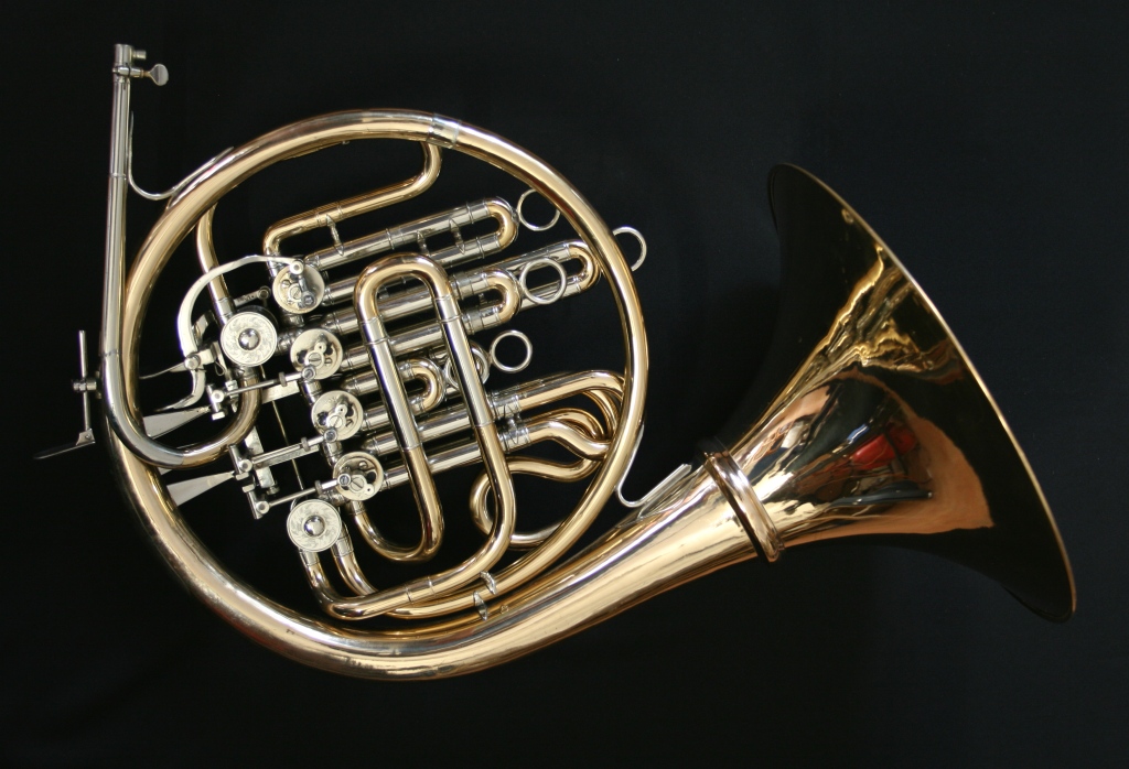 This Alexander model 107 dates from the late 1970s when Alexander/Meinlschmidt were using tryplen to make some of their rotors – (maintenance is just the same as any other rotary valve). This gold brass, lacquered horn is in good condition (a little evidence of repair and some minor dings) and just the thing to help with security of pitching in the upper register. With that lovely warm tone of gold brass plus a little help with accuracy of high notes this is an instrument well worth trying.