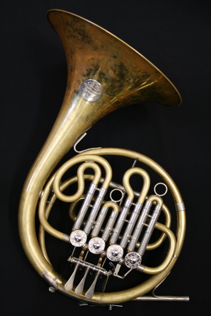 This is an Alexander model 90 single Bb horn. It has a lovely sound, perfect for chamber music and classic orchestral repertoire! It is unlacquered yellow brass with a fixed bell and duck’s foot/flipper. A very light instrument, these top level singles are very popular with amateurs and professionals. It comes with a fixed bell hard case.