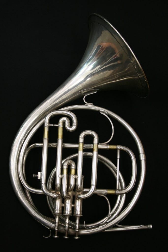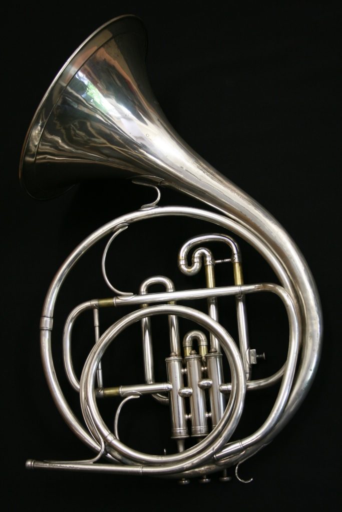 This is a Boosey and Hawkes Imperial silver plated piston horn with an F crook and tone coupler. This horn is in very good condition and more crucially is a lovely instrument to play. It comes with a soft gig bag.