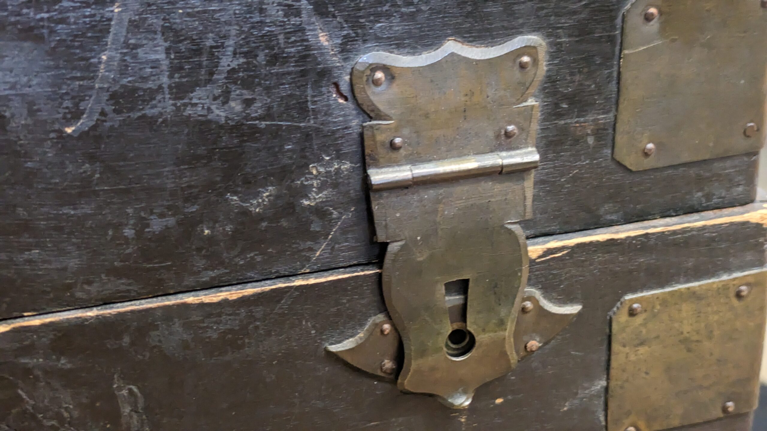 It comes with a wooden box with brass detail – almost certainly original, and a mouthpiecethat is contemporary to the instrument.