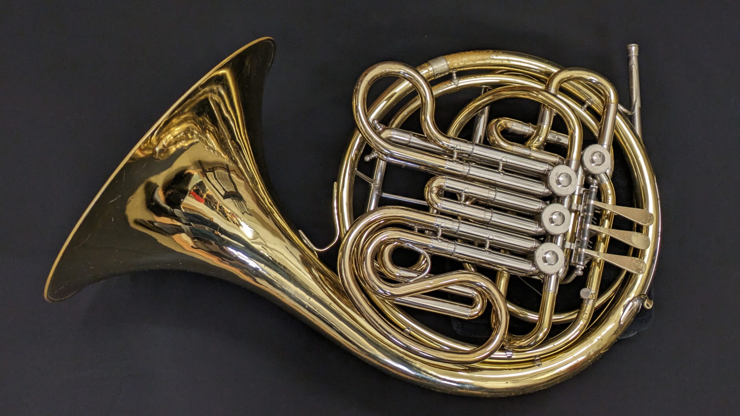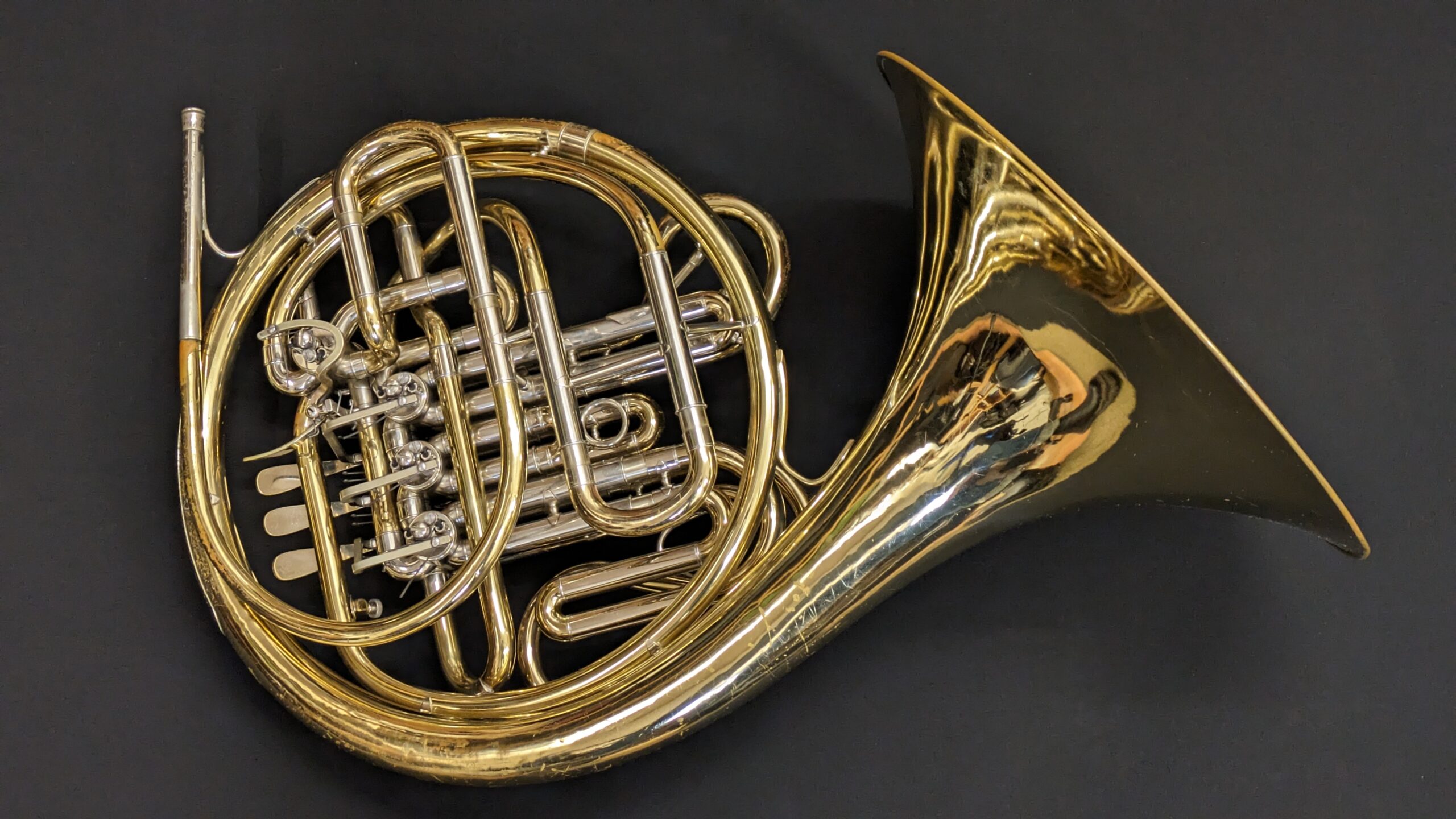 This particlar instrument is in good order mechanically, with a few areas of lacquer loss due to use. This is a lovely instrument, perfect for the budding horn player  – whether adult or child!