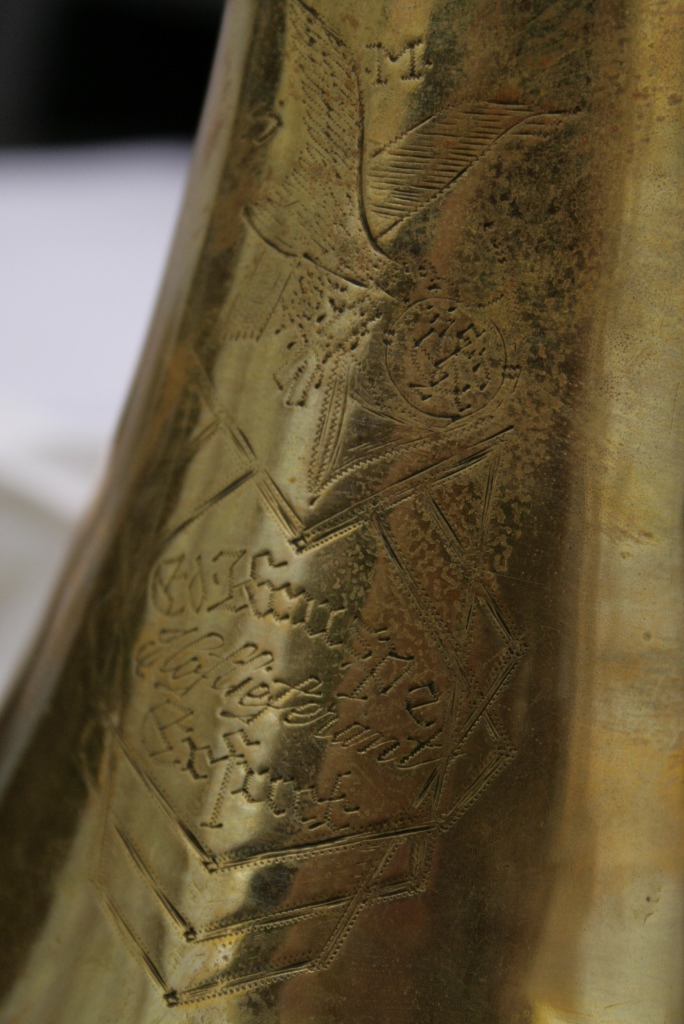 This Kruspe was built in the early 20th Century between 1905 and 1918. It is an unlacquered single F instrument with a crook and rotary valves,including a stop valve. It has the Ed Kruspe/Eagle carrying a horn spout engraving and is marked “Hoflieferant”, meaning purveyor to the court.