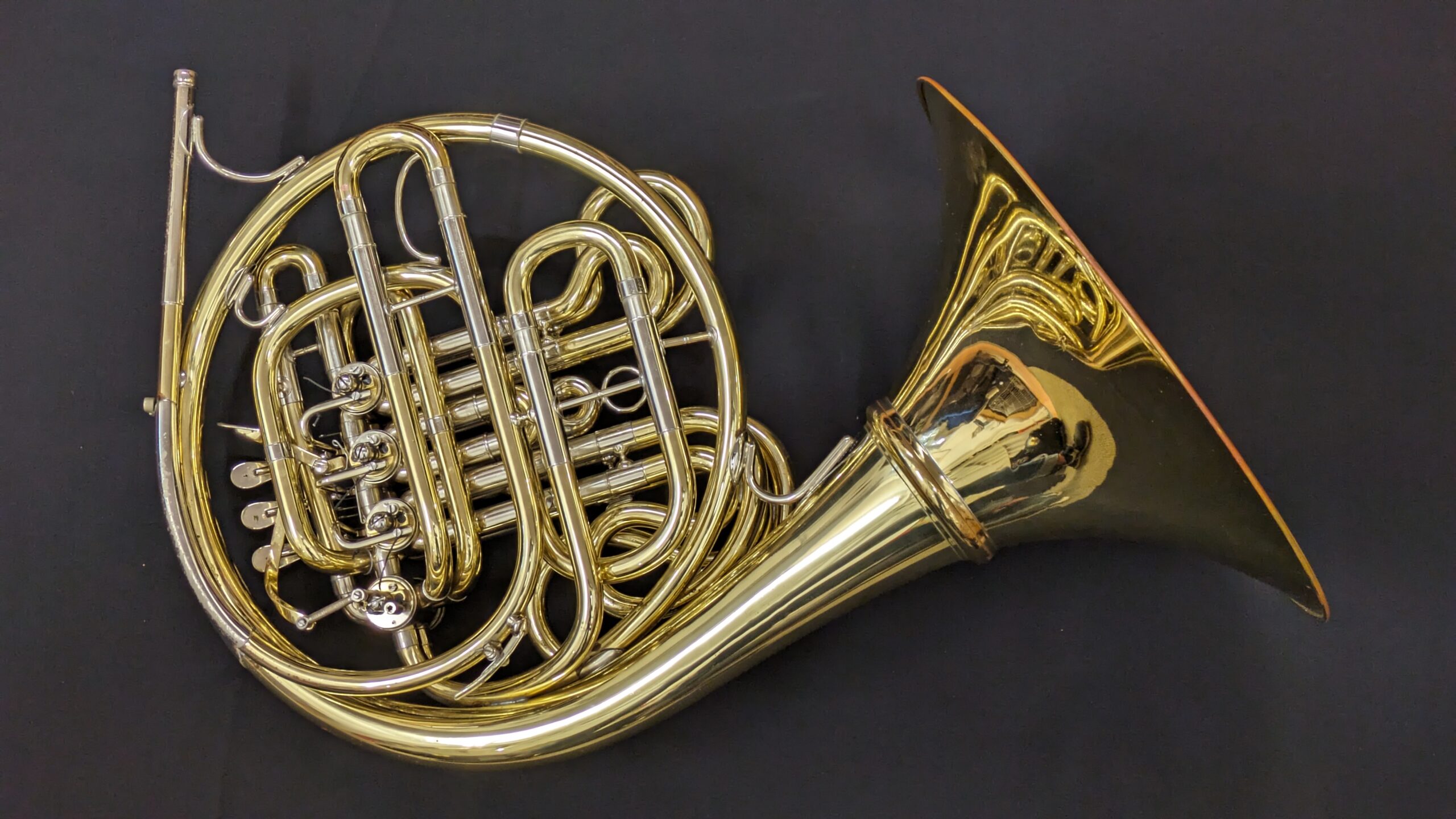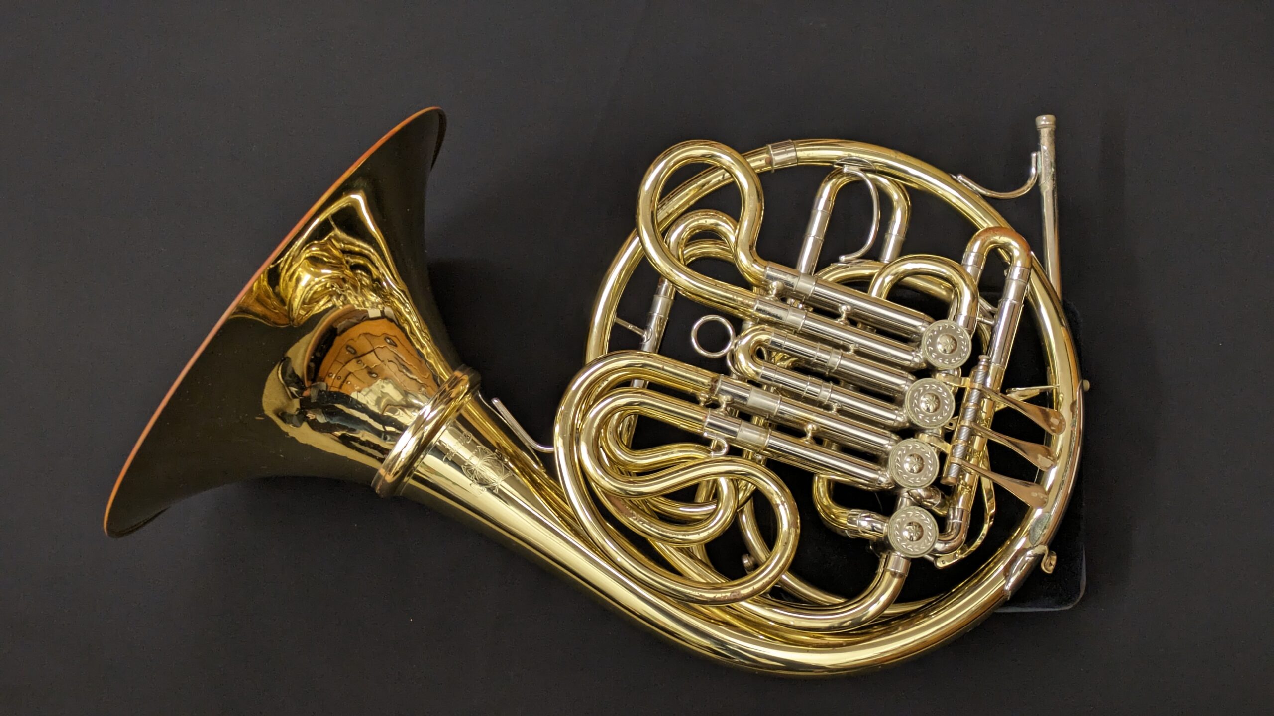 It is a yellow brass, screw bell horn with lacquer. Valve pressures a really good as the horn is not too old, and the general look of the horn is a shiny, lacquered instrument. However, in some areas there are some patches of redrot (dezincification) and some damage to the lacquer. As such, this instrument is being sold at a price that takes this into consideration. As far as we know, the brass will still be fine for a long time to come and parts can be replaced should it ever become a problem in the future – so apart from the asthetics, this is a lovely instrument with many years of performing ahead.