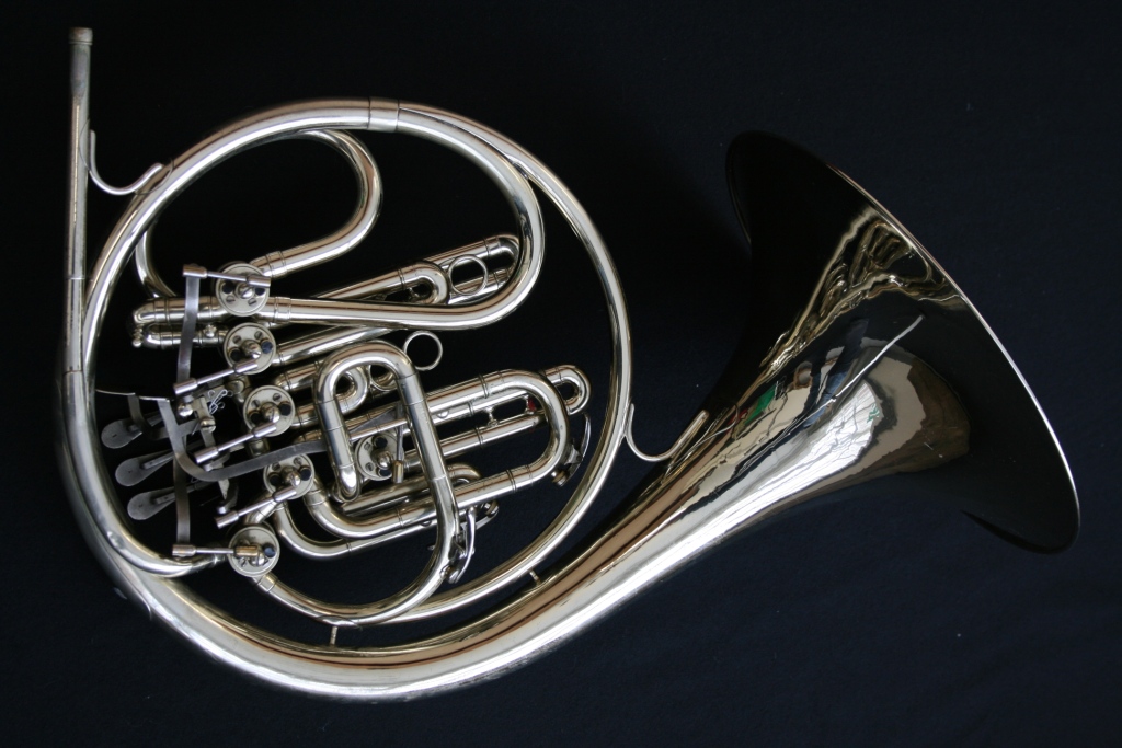 This Paxman 42 is a Bb/f alto horn with an ascending 3rd valve on the Bb horn. This instrument came about as a result (to quote Willi Watson’s recent article in The Horn Call, Feb 2018) of Dick Merewether’s “semi-obsession with the French system of ascending third valve” and became “particularly popular amongst film and sessions players and in the Royal Opera House”. There are some very good alternative fingerings available with this type of instrument and better tuning on notes such as D when it is played on the 3rd valve.