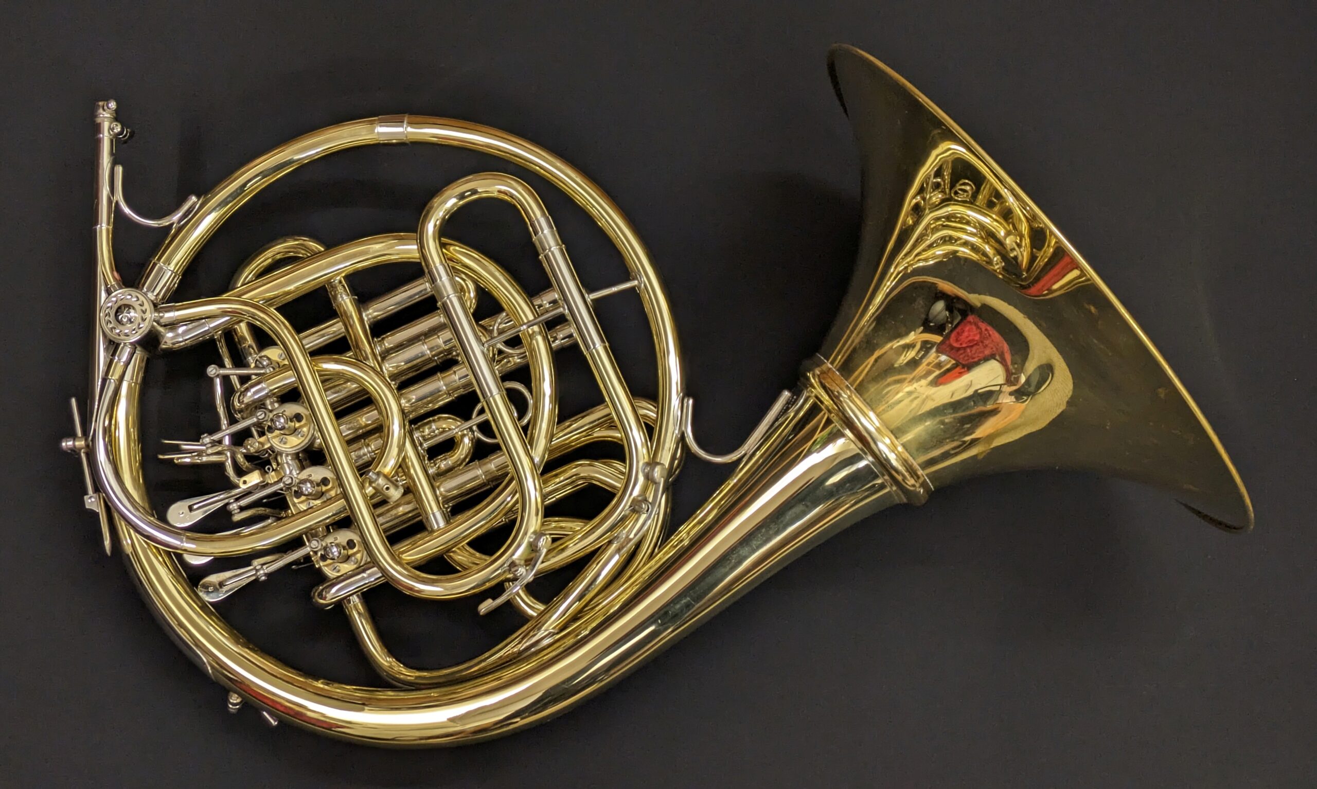 This looks very nice overall, the flare has been strpped of lacquer to brighten the sound. The body is all still lacquered. There are a couple of small redrot areas on the leadpipe as seems to be the norm nowadays.