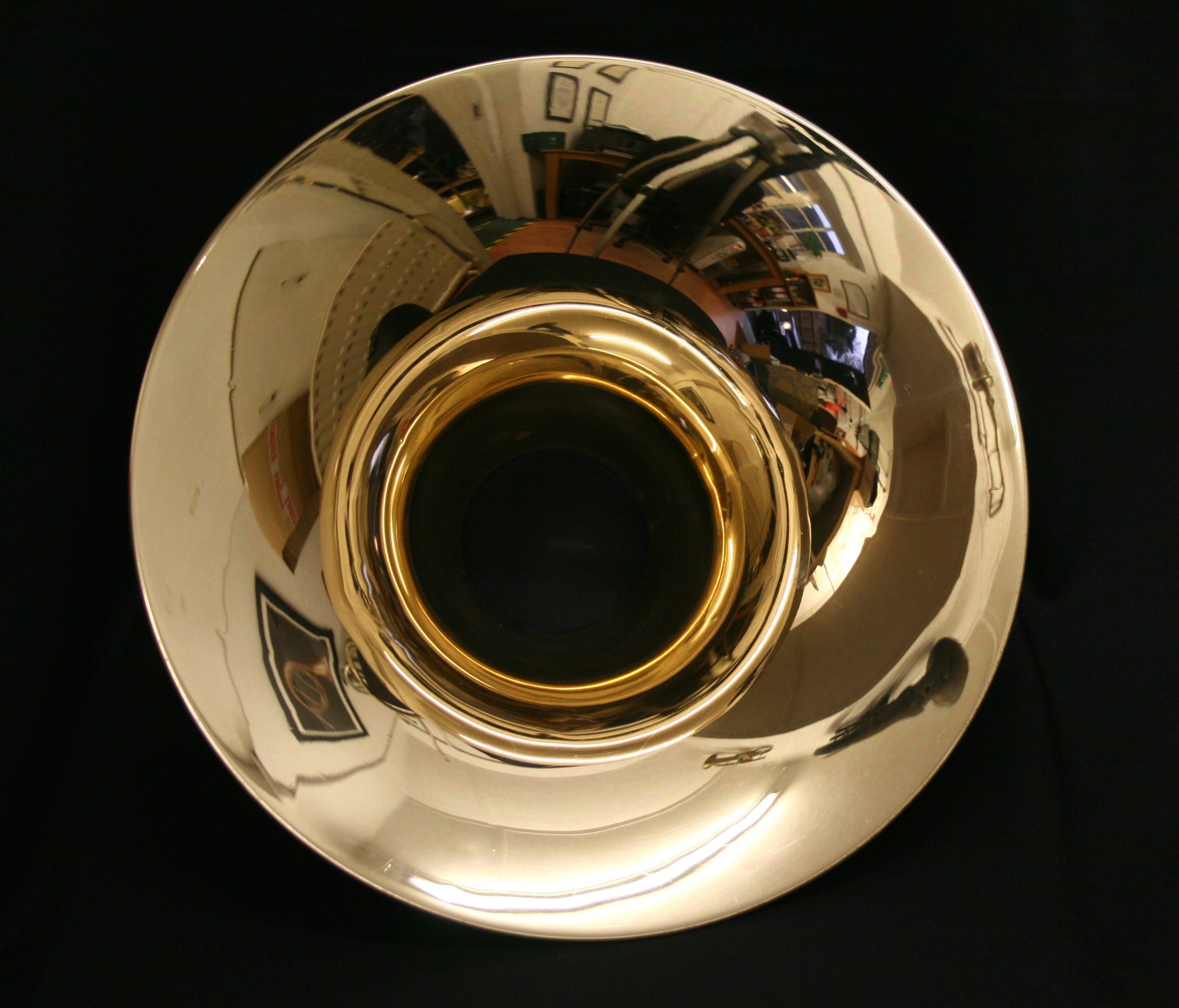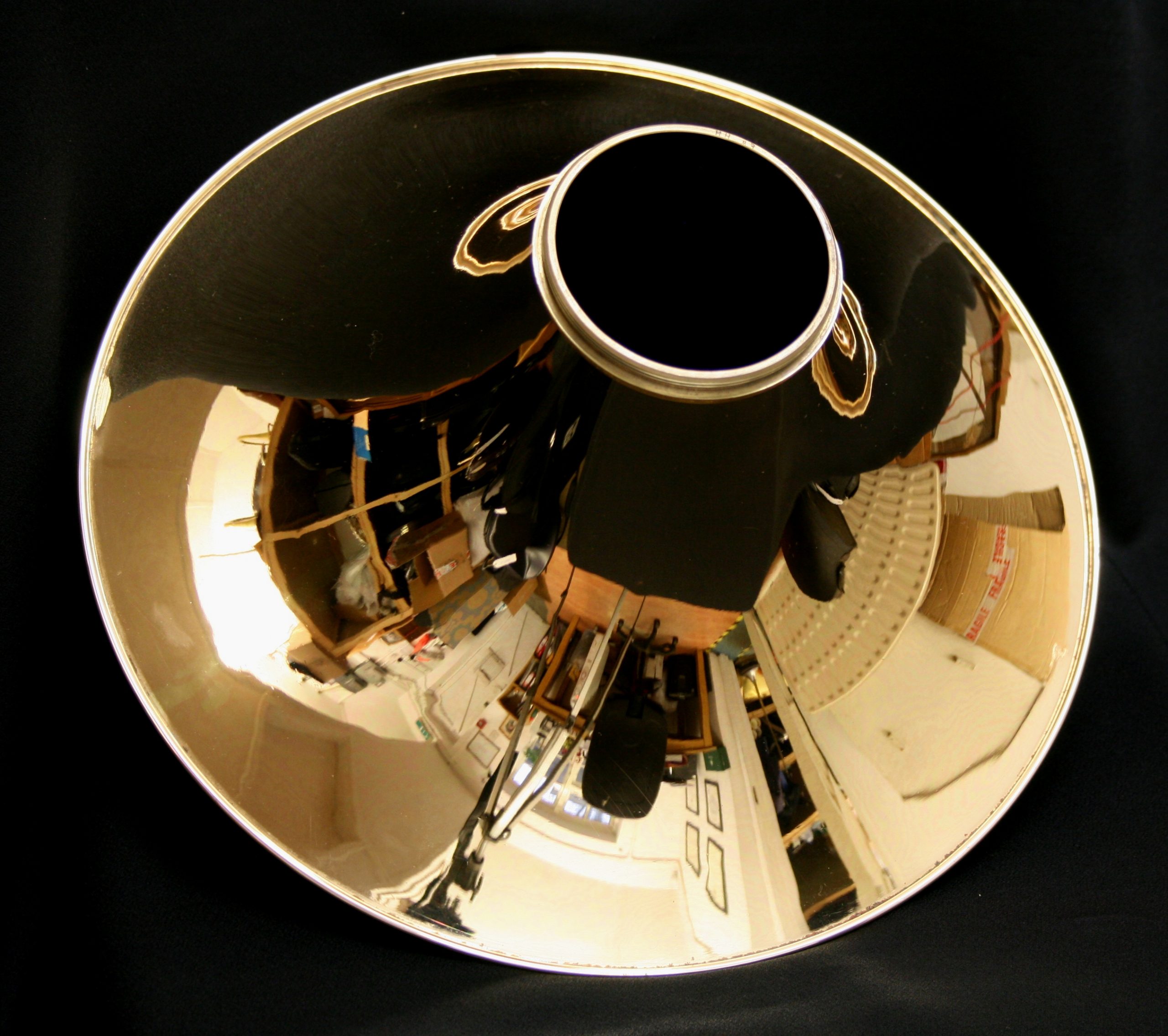 A gold brass, hand hammered, lacquered flare in Extra Wide bore.