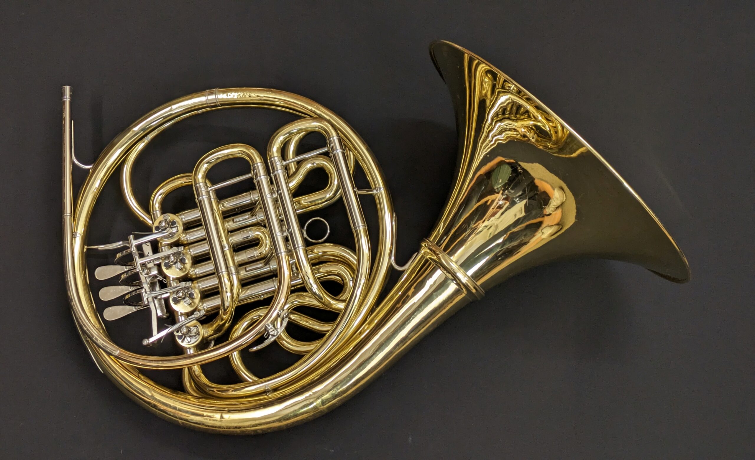 Made in the standard yellow brass, with a medium bell flare, this model is perfect for players from grade 6 upwards and can be used at all levels of playing. This horn is in very good condition, with some lacquer wear and evidence of dent repair it still has the overall look of a shiny, lacquered instrument.