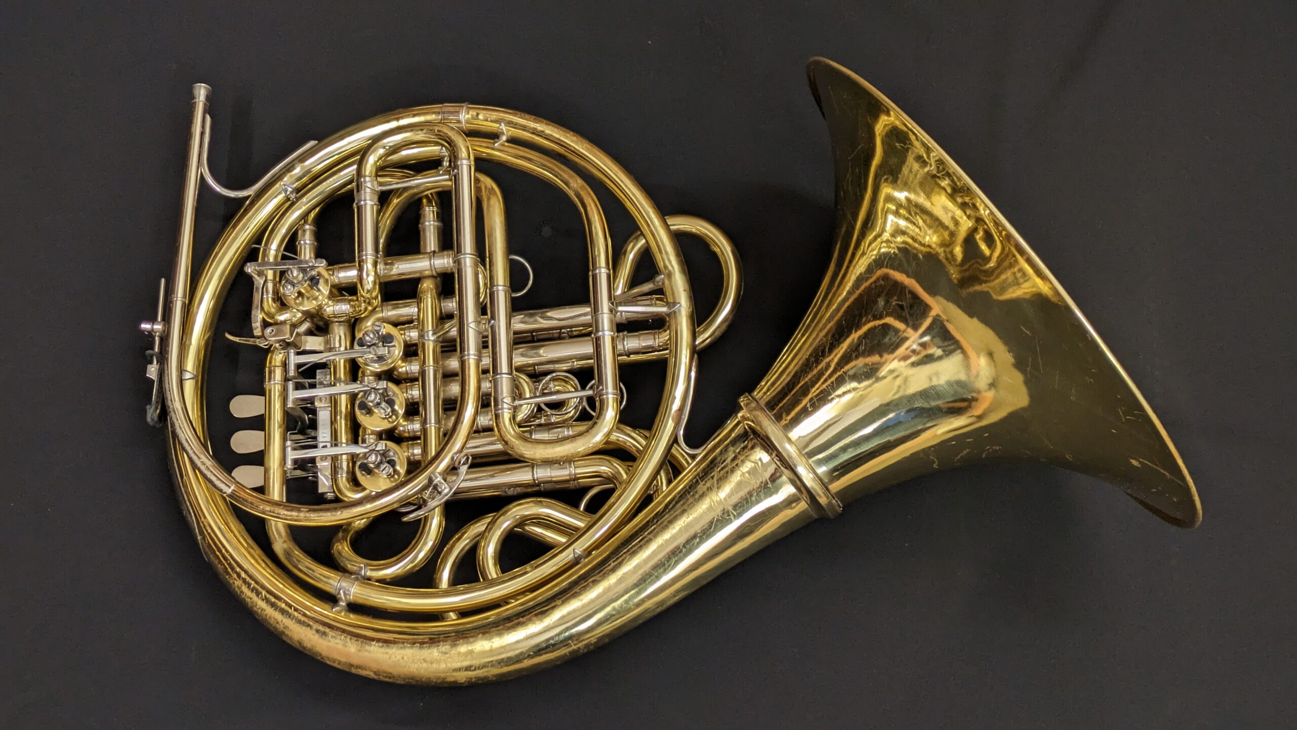 Valve pressures are not high on this horn, but it still has some life left and plays well – the Bb horn is more responsive than the F side and still has the ability to produce a lovely big sound when needed. Oh, and it has a very handy duck’s foot attached too!
